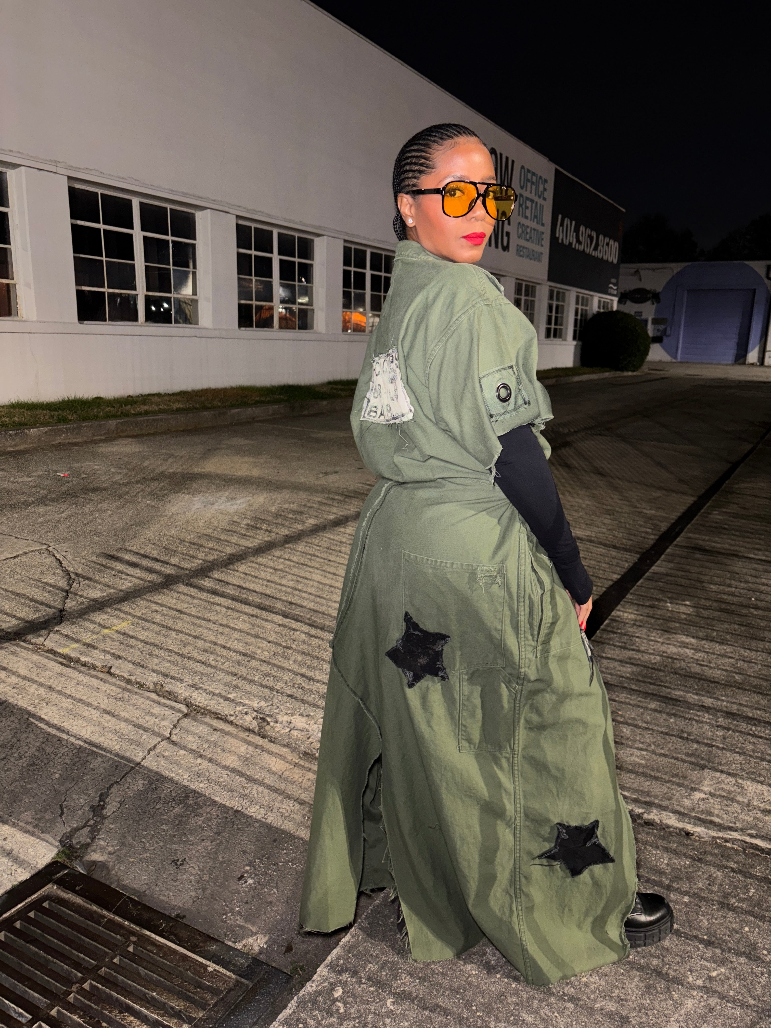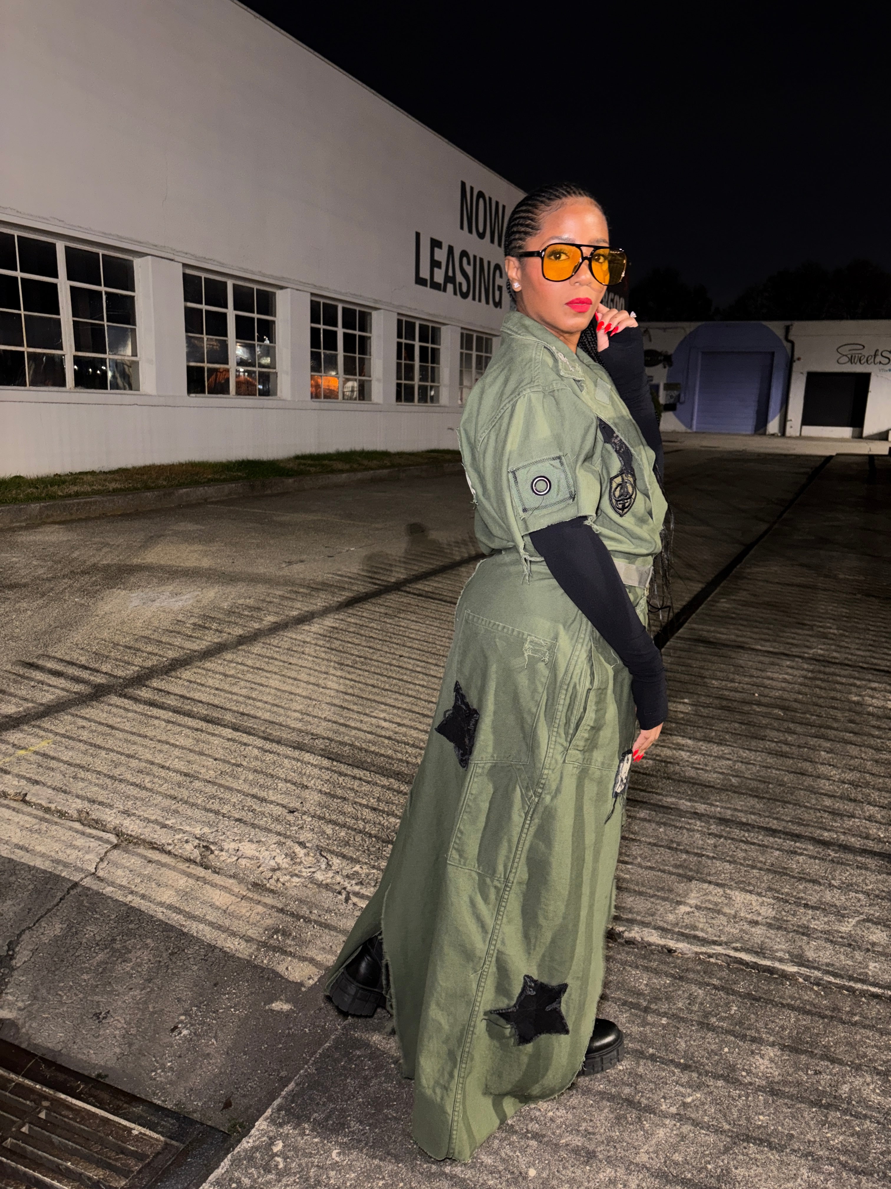 Styled open or cinched, this piece effortlessly bridges military heritage and modern street fashion. It can be worn as a statement jumpsuit, layered as a coat, or styled with boots for a bold, commanding look. Equal parts rugged, rare, and fashion-forward, this USAF coverall is a true one-of-a-kind statement for anyone drawn to authentic vintage with attitude.