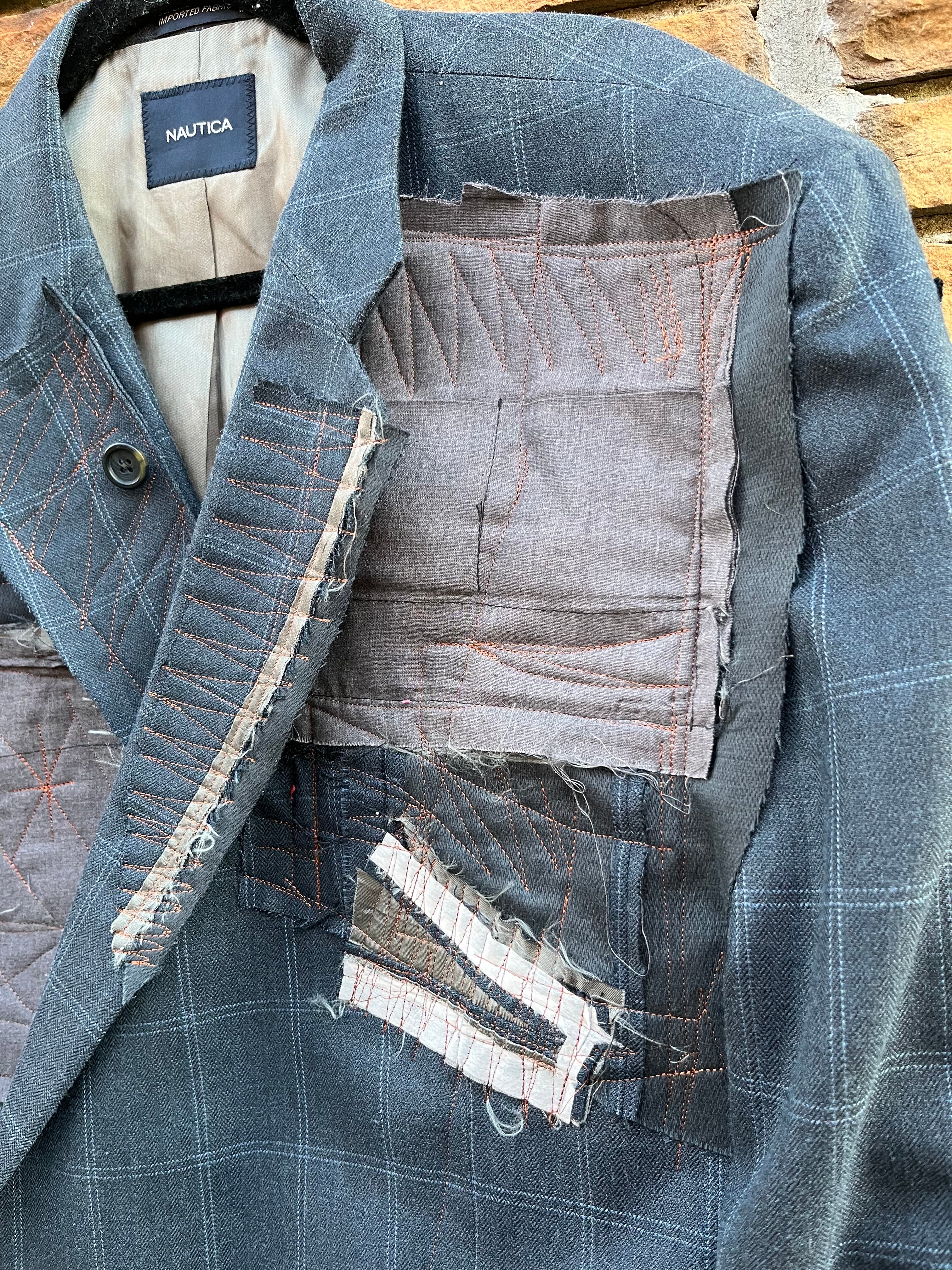 Custom Nautica Block Pinstripe Patchwork Crop Blazer
