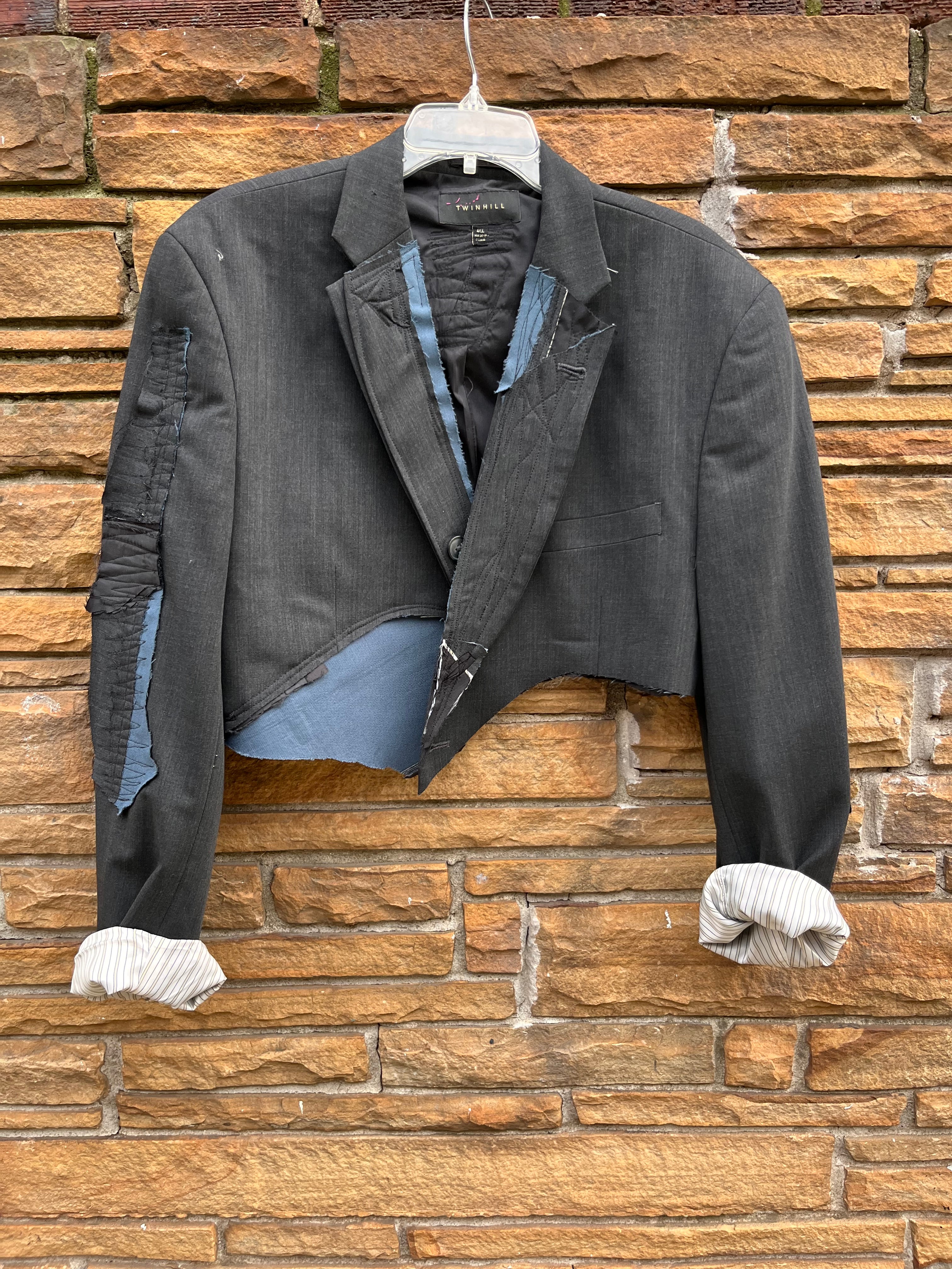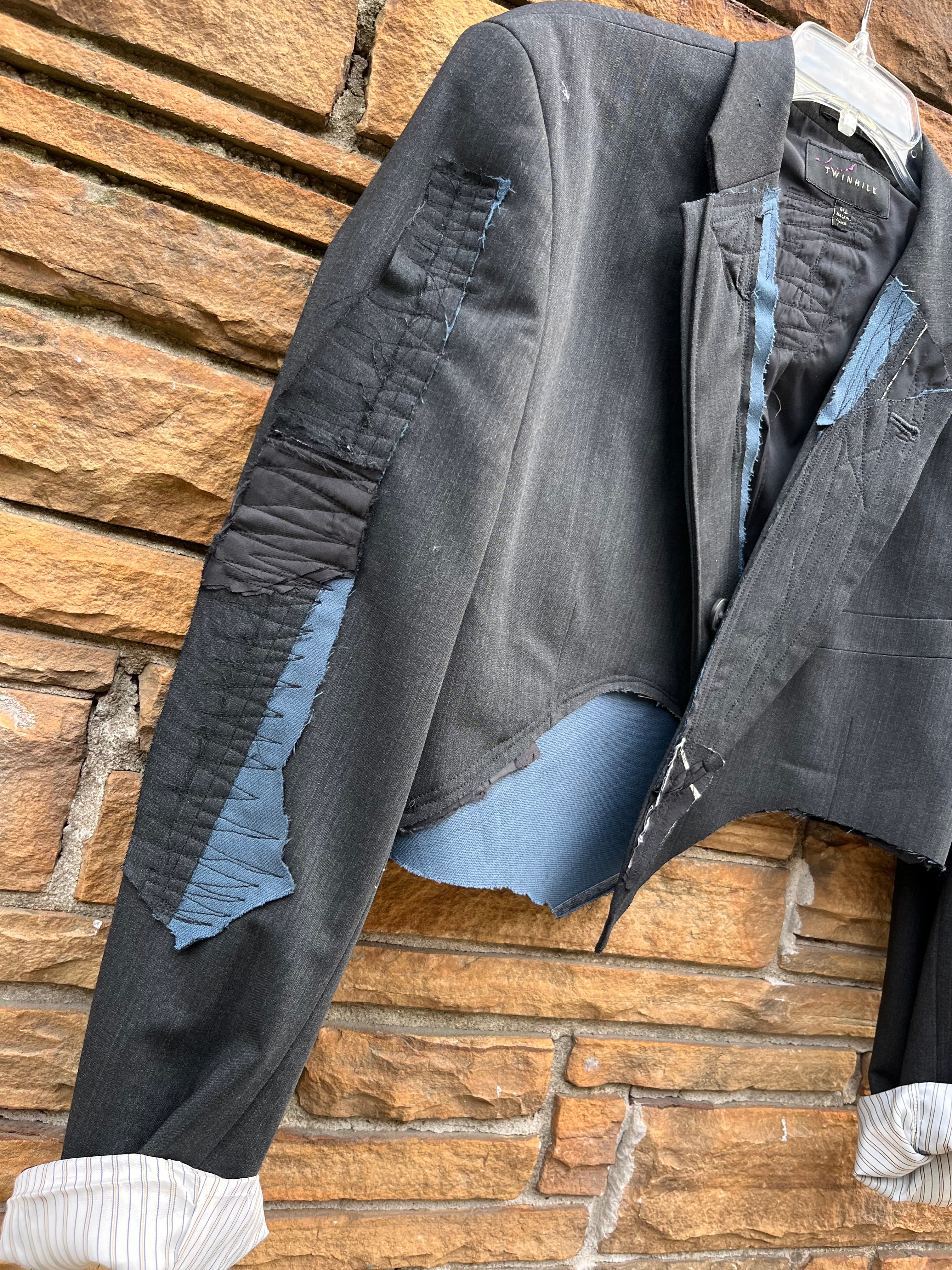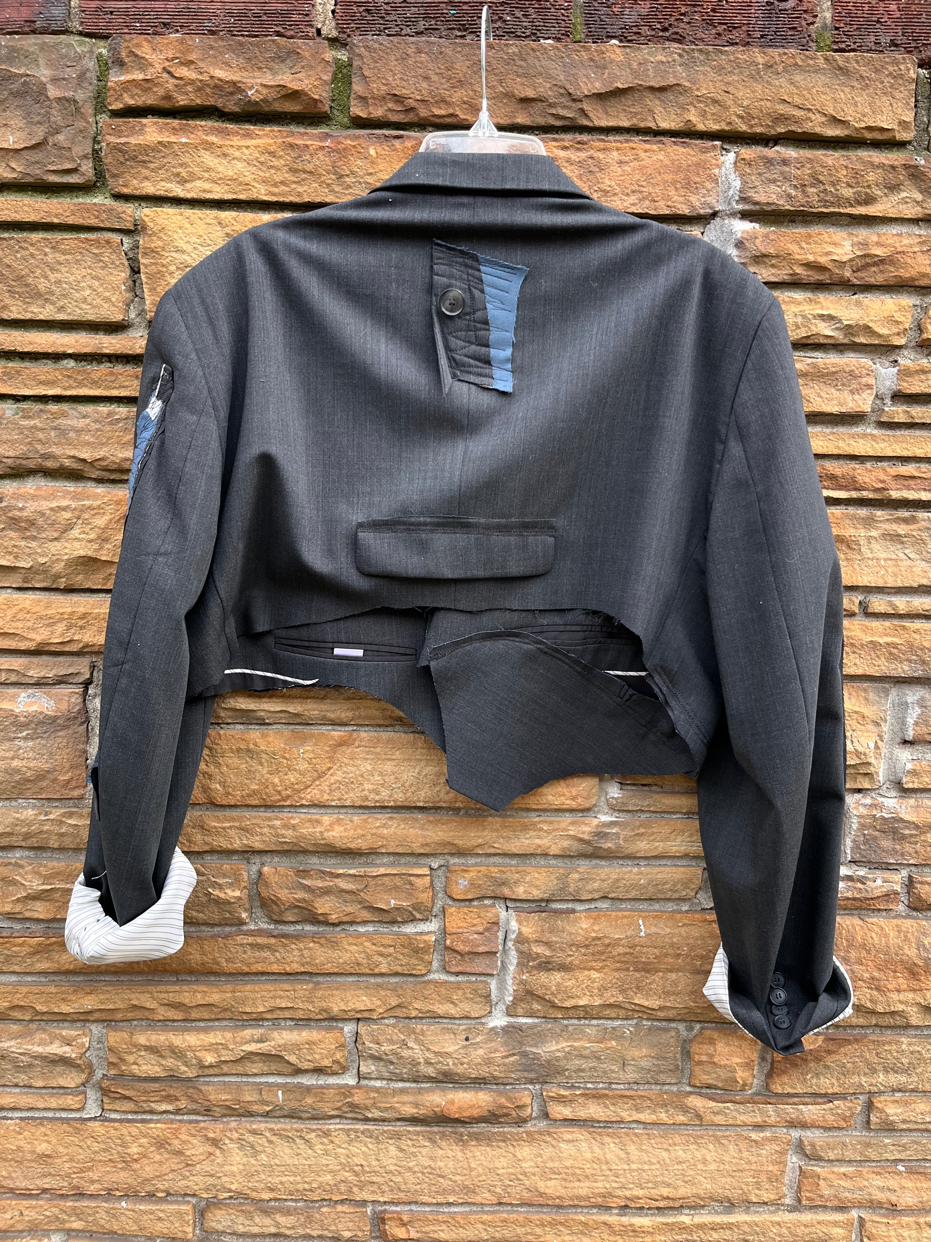 Each crop blazer is custom-made differently and one of one with different grommets, patchwork, and stitching.