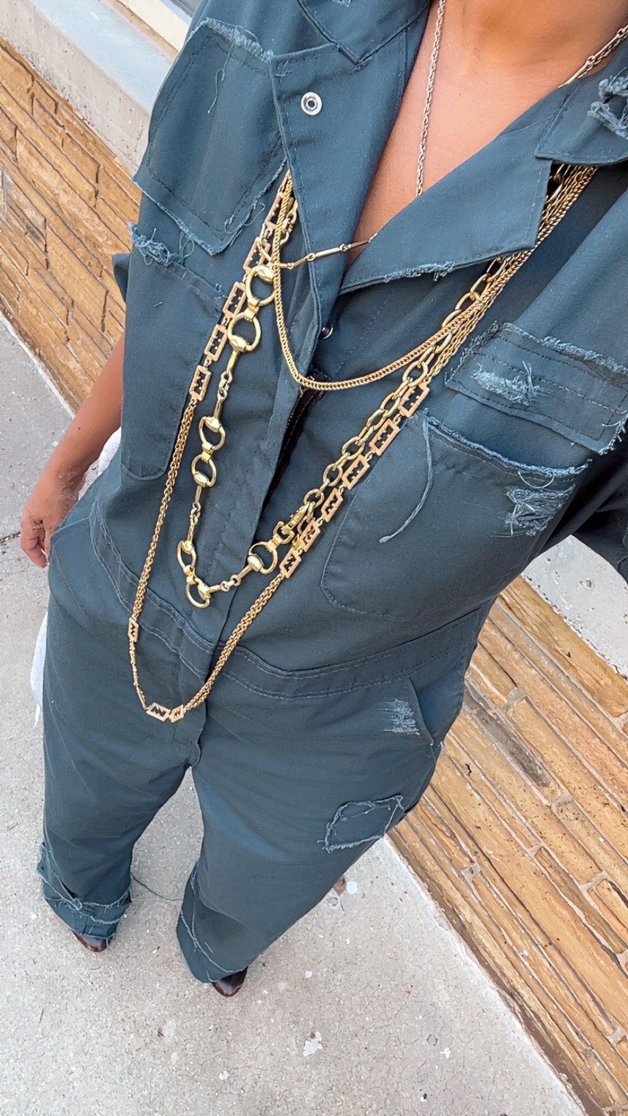 Size 44. Fits medium to large. Tall girl friendly and necklace not included