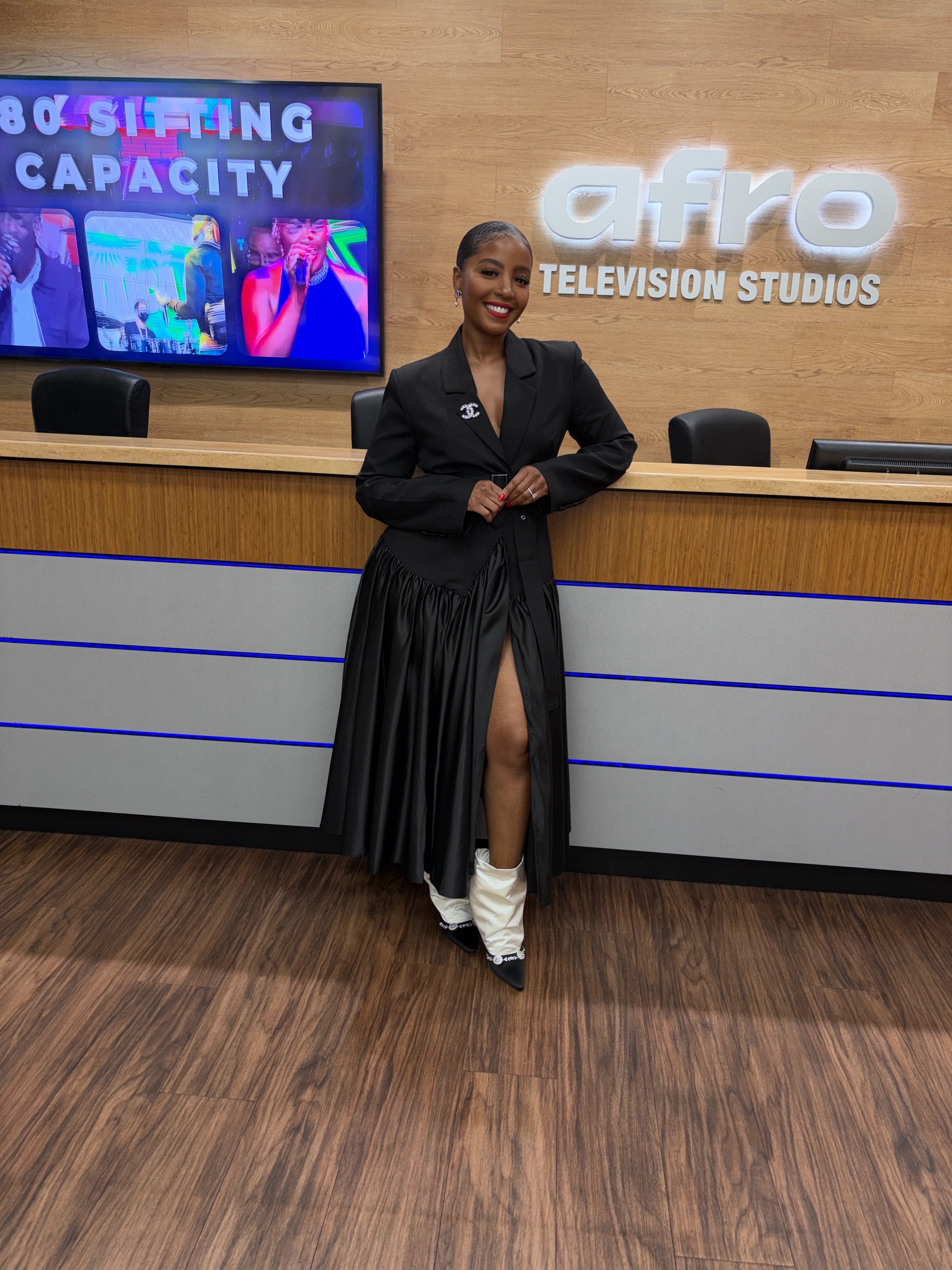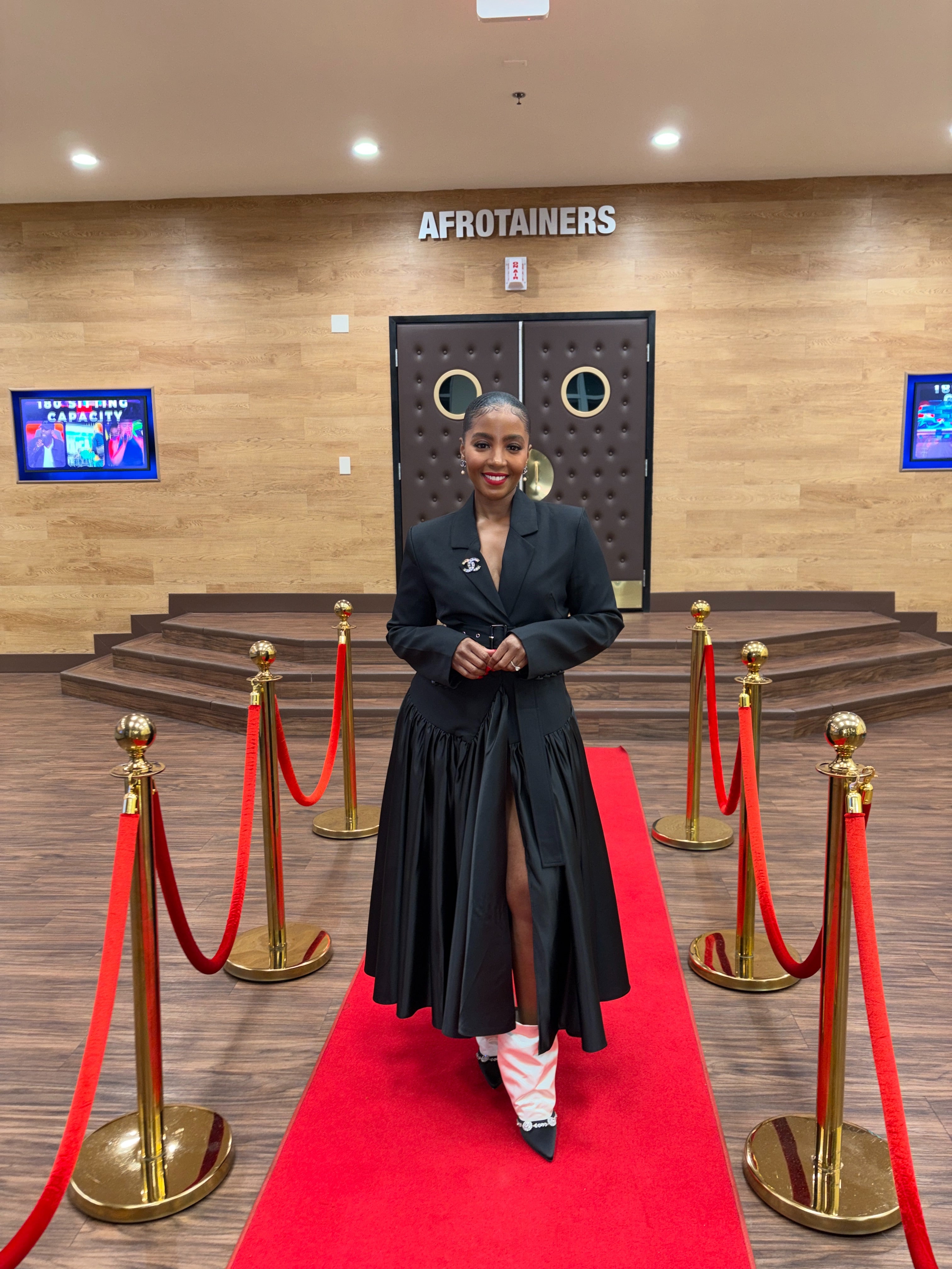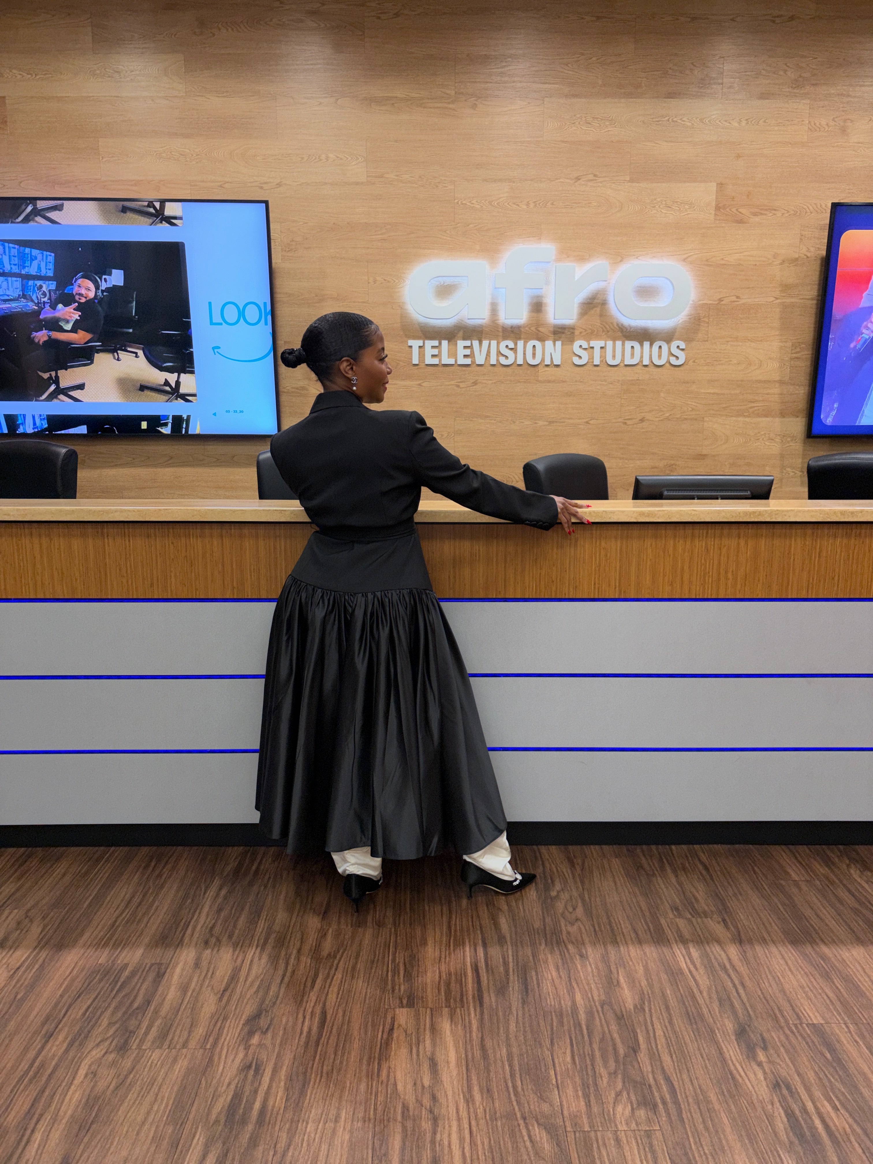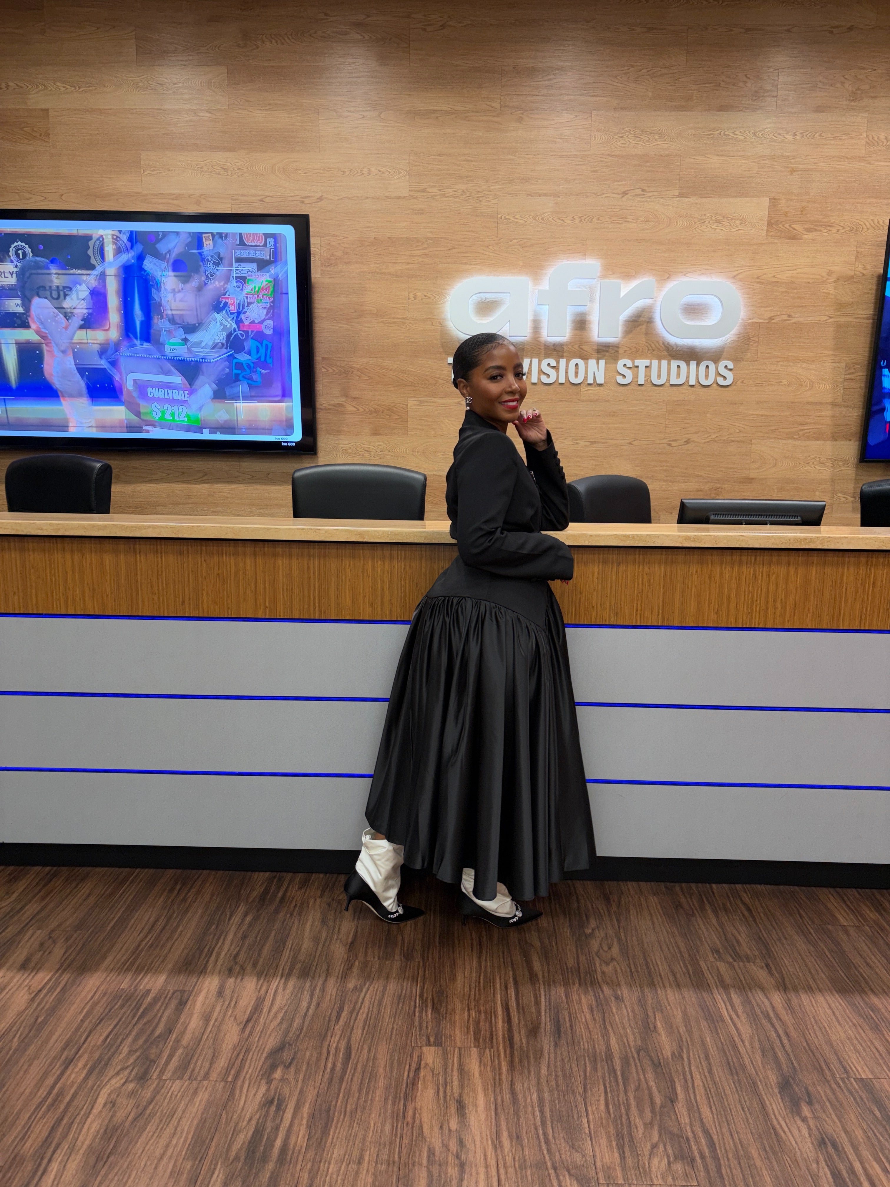 The top features clean, refined suiting lines, while the skirt cascades into soft volume, adding movement, elegance, and a feminine edge. Its all-black finish keeps it versatile and sophisticated — perfect for cocktail soirées, upscale dinners, or any moment you need an unforgettable entrance.