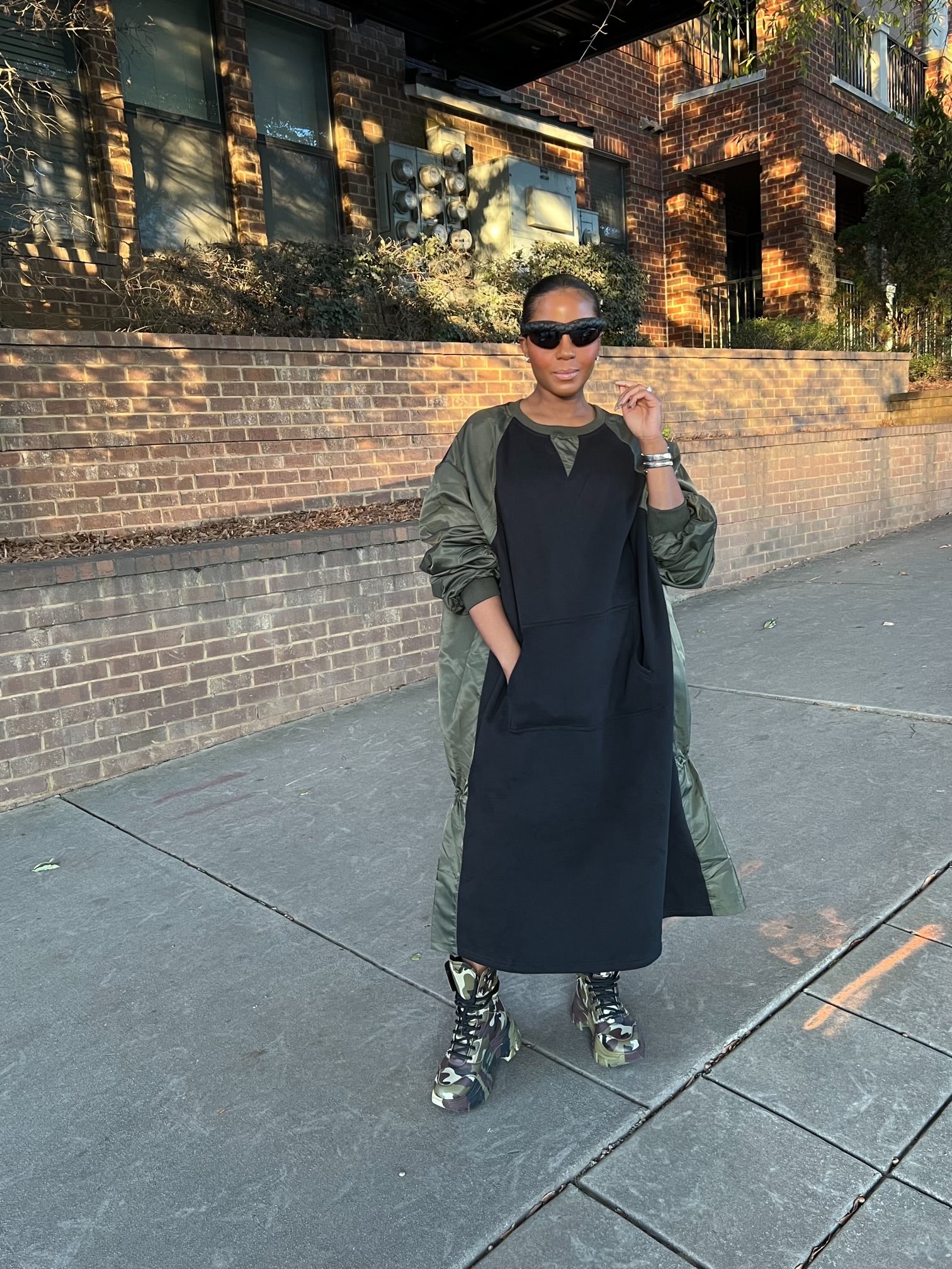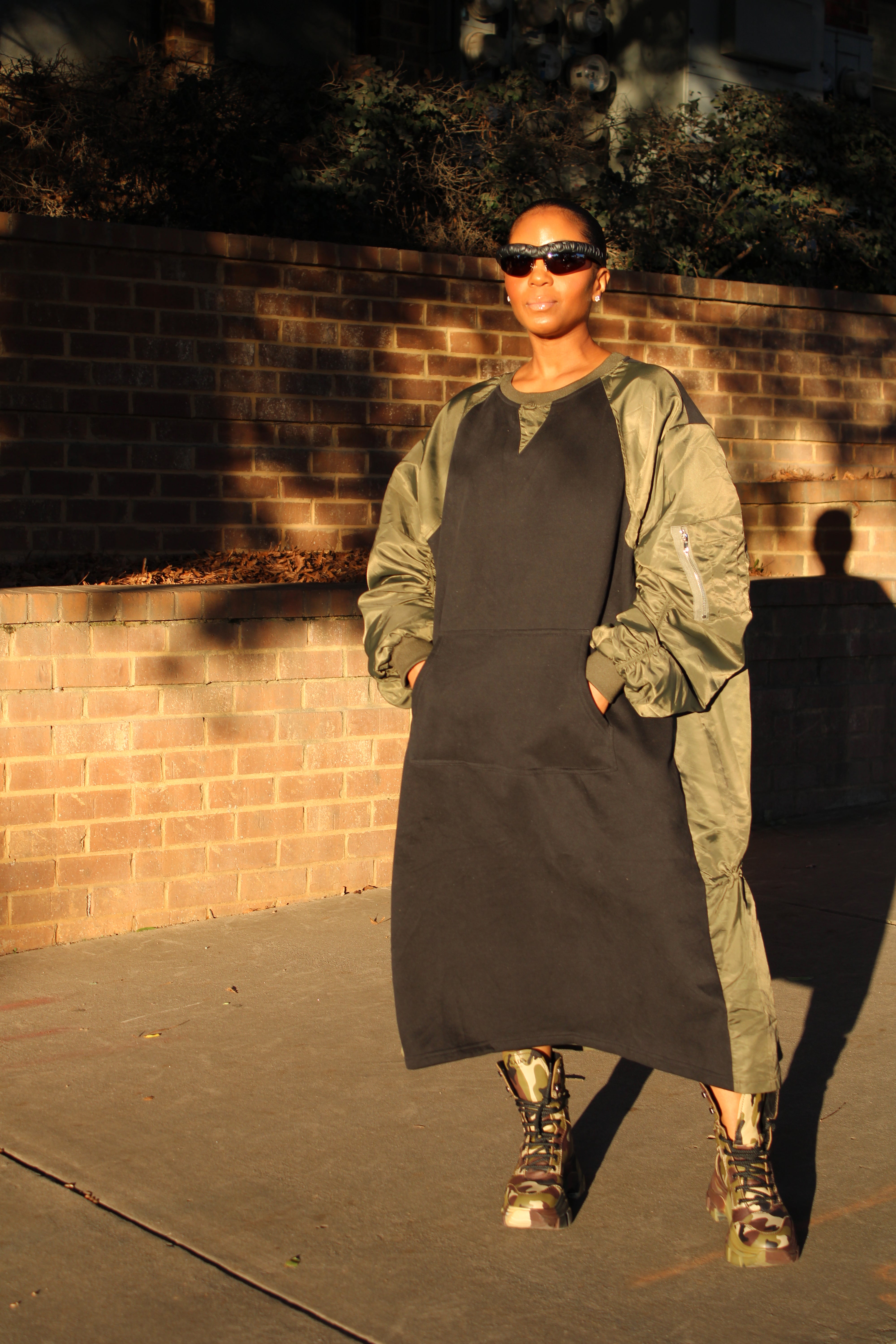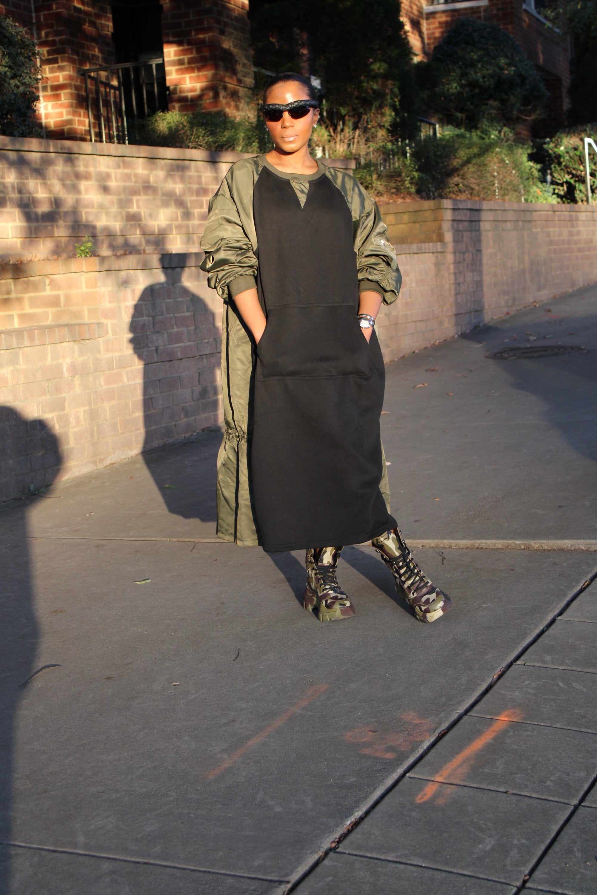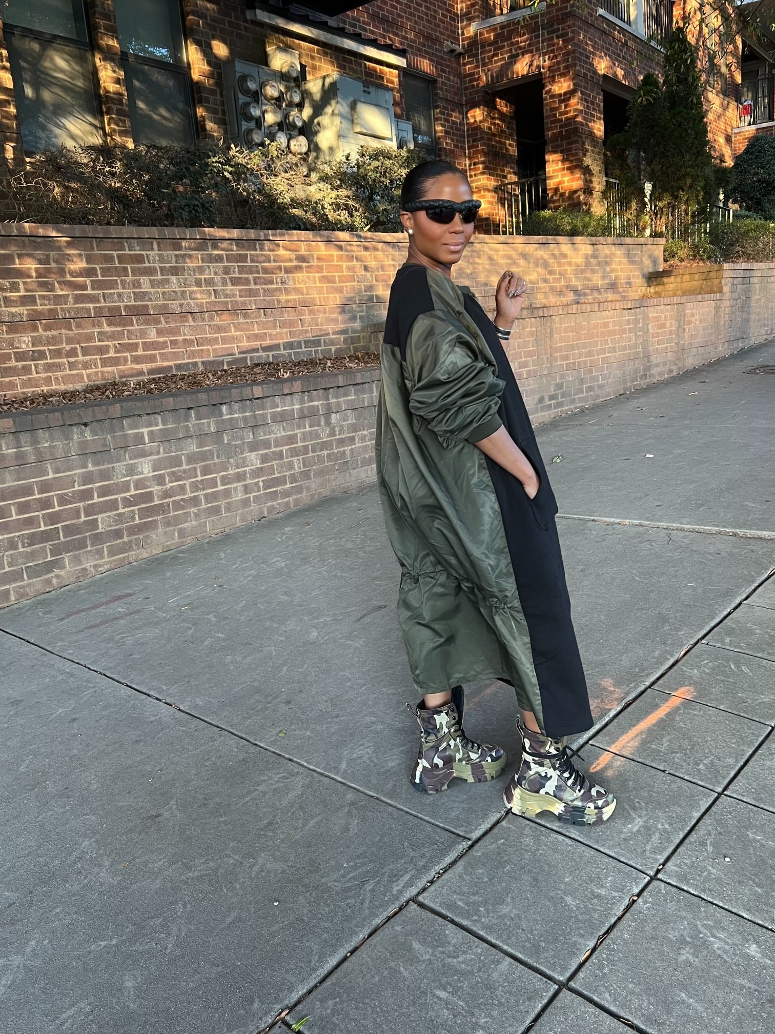 Paired with those fabulous camouflage boots, it screams effortlessly cool while being super functional. a dope street vibe 😎