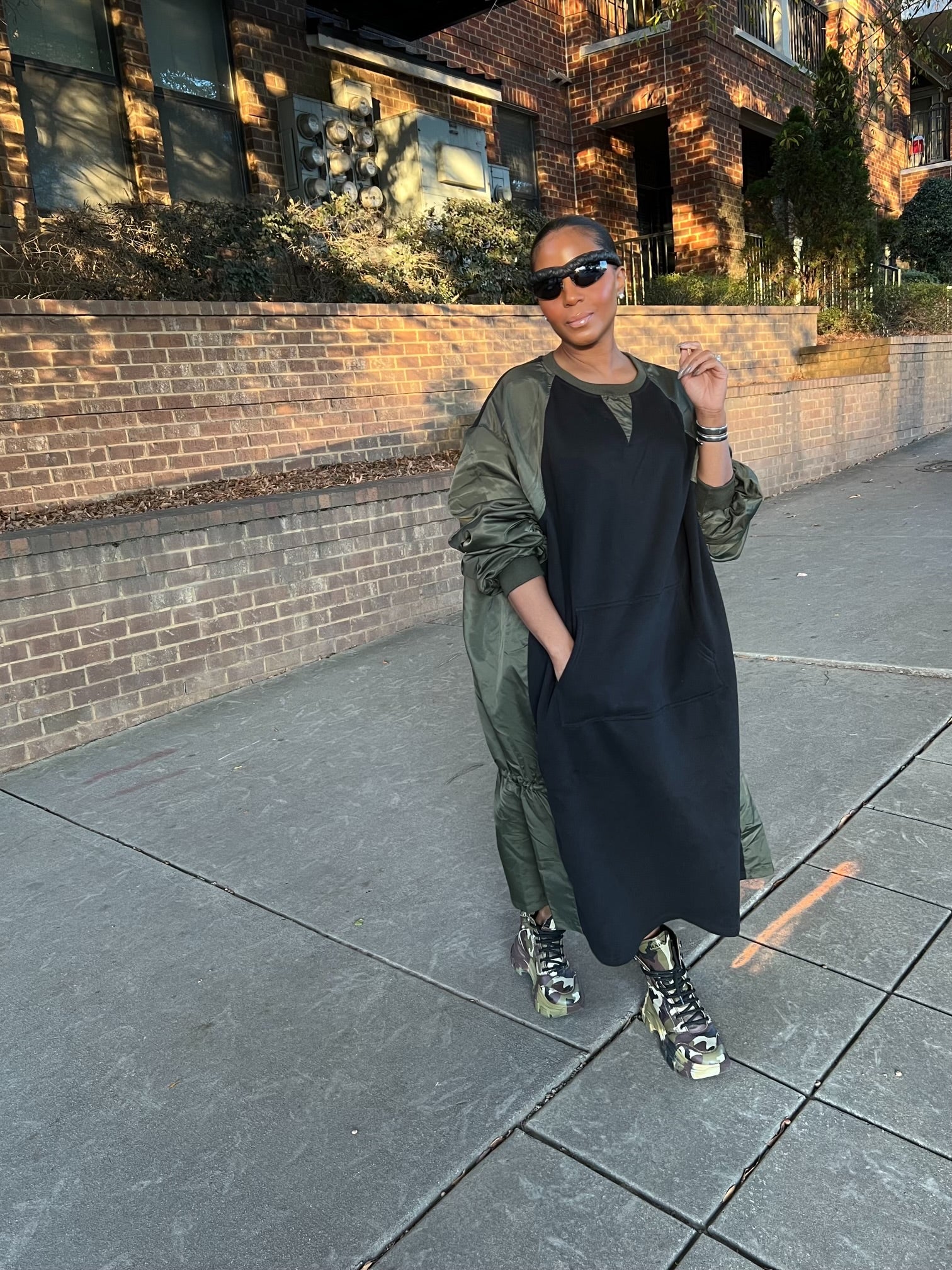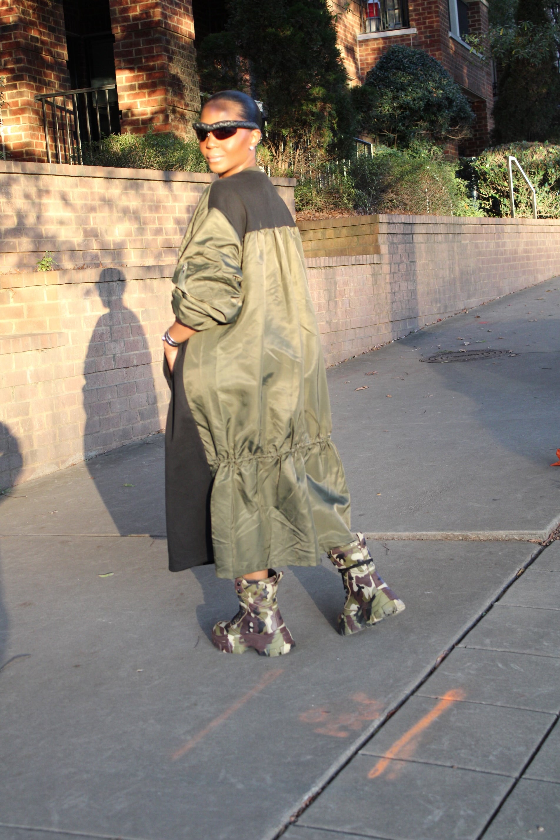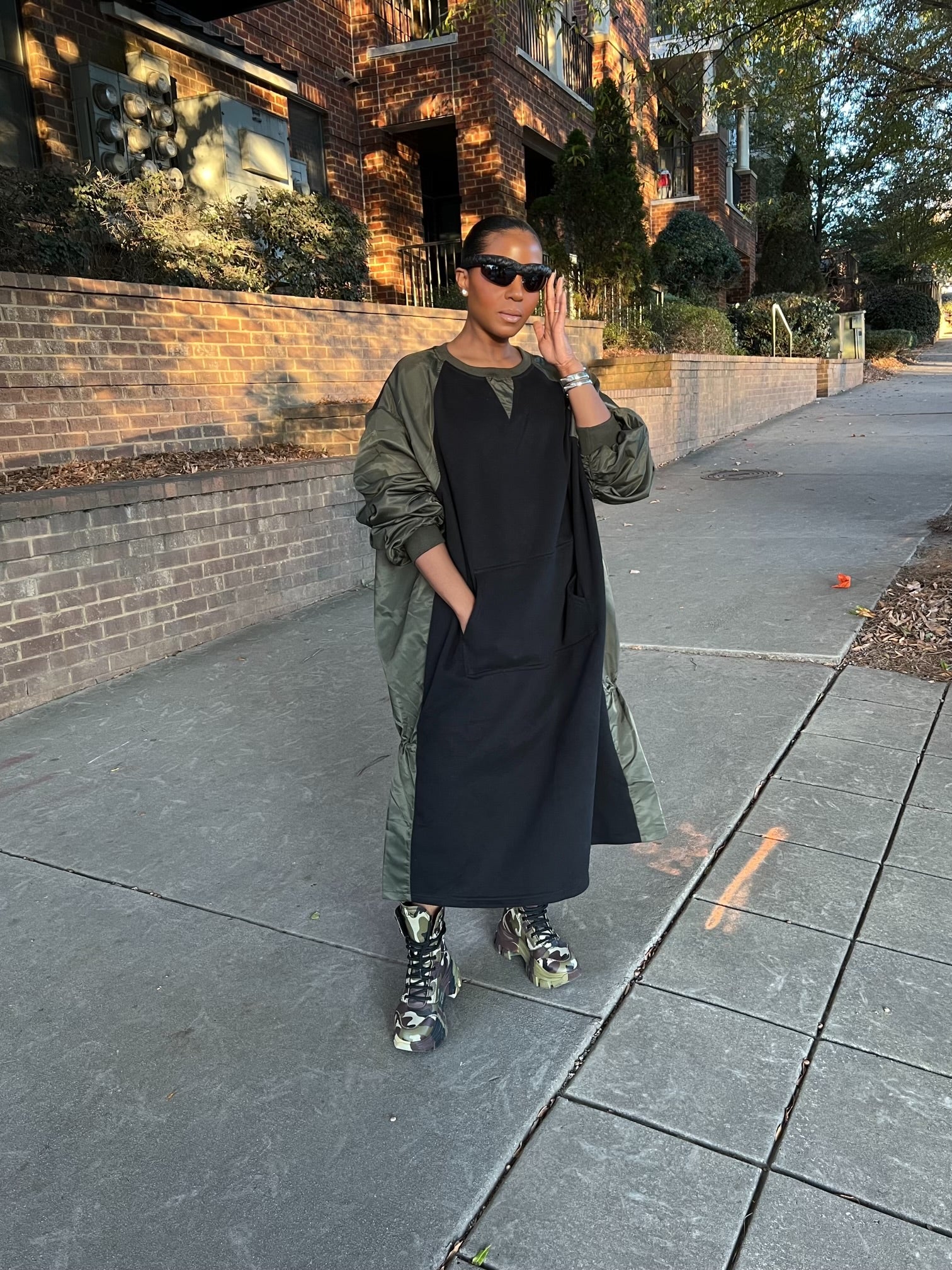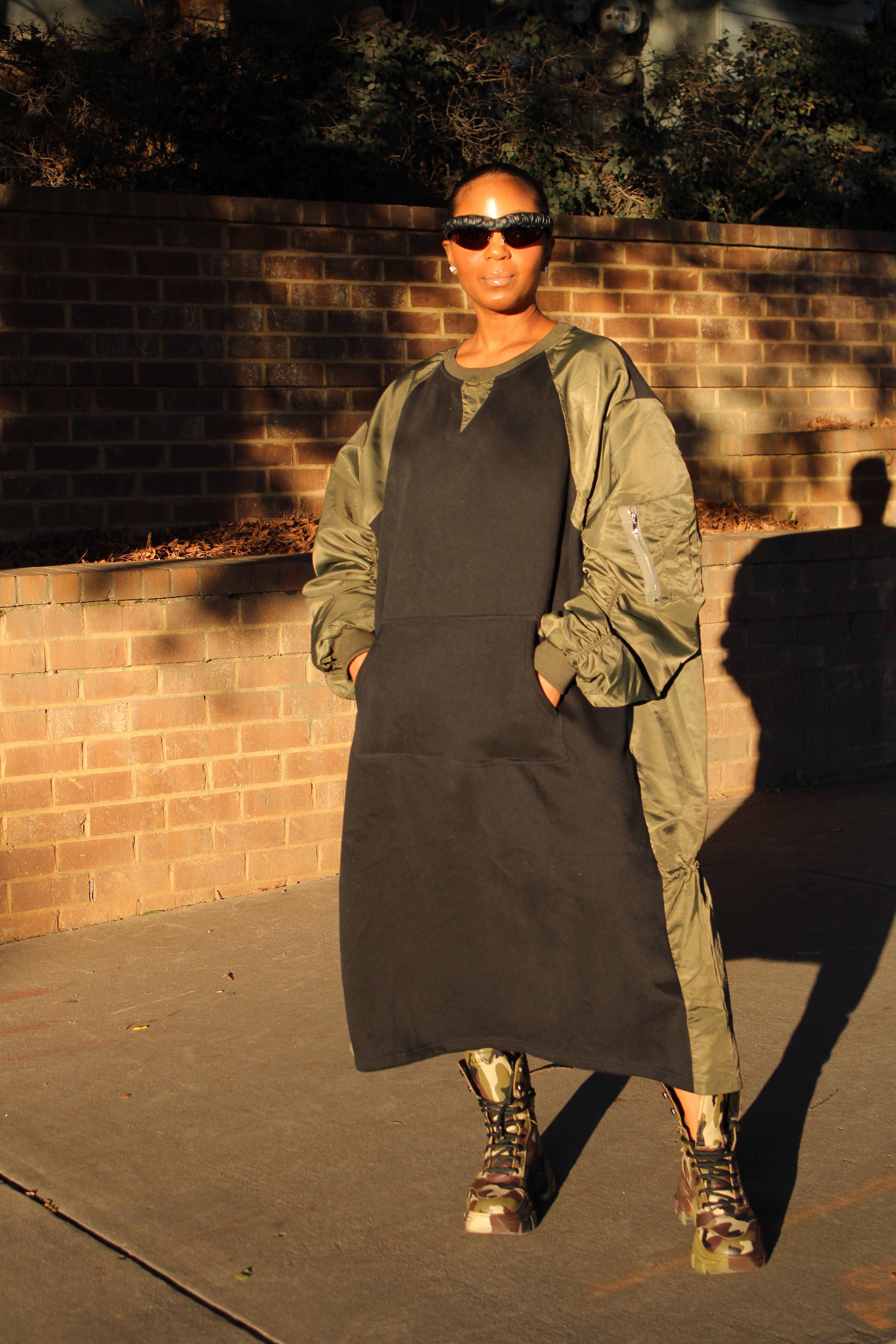 Paired with those fabulous camouflage boots, it screams effortlessly cool while being super functional. a dope street vibe 😎