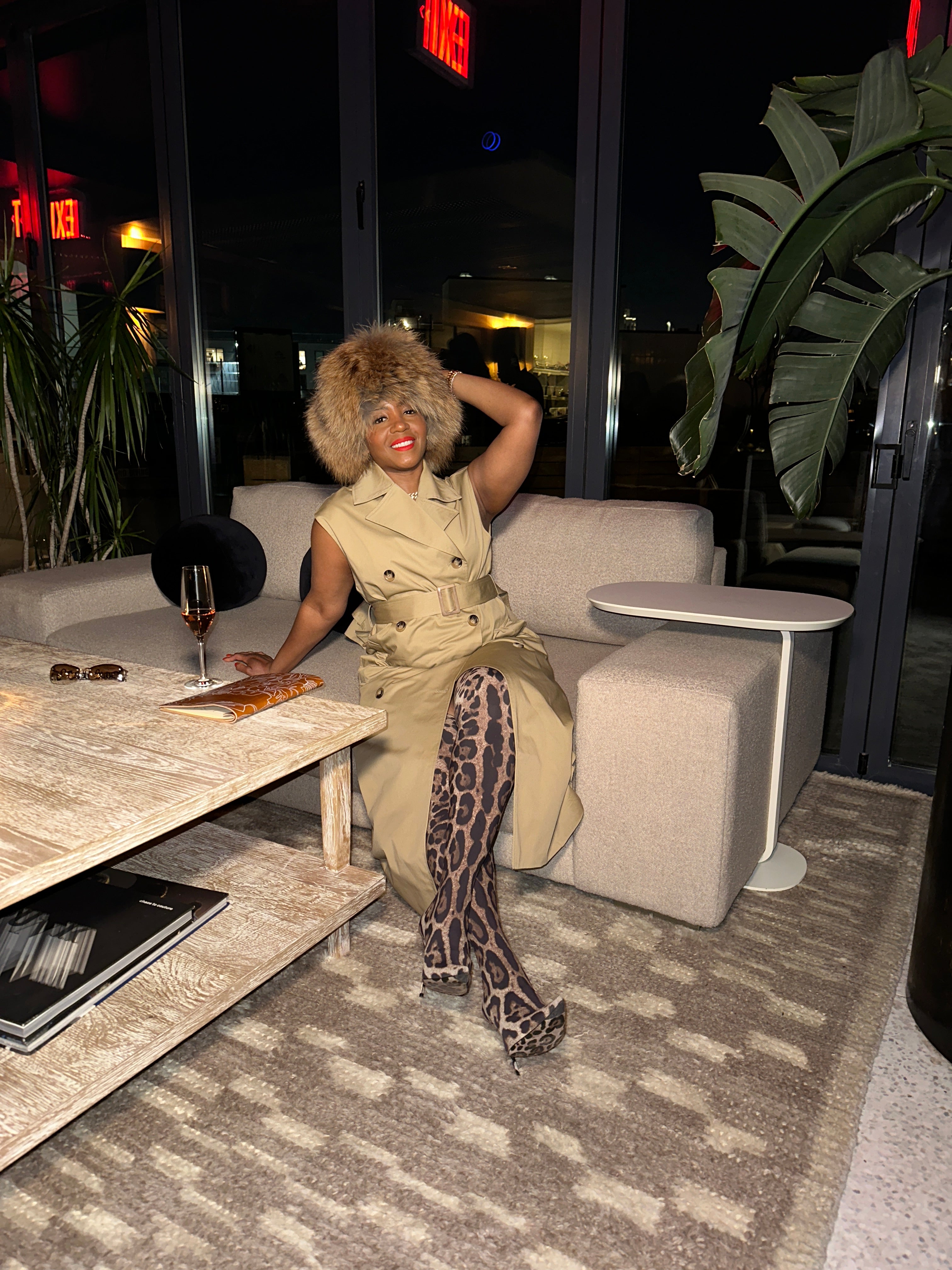 Finished with a double-breasted front and adjustable belt to define the waist, this statement piece moves effortlessly from polished to bold.