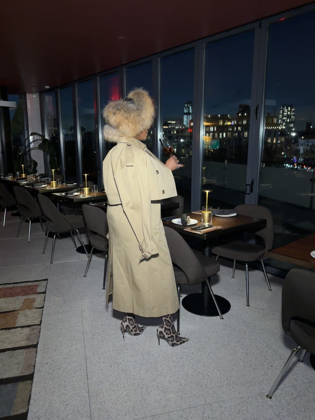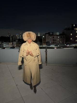A modern take on the classic trench, this two-piece set features a cropped trench jacket layered over a long sleeveless trench vest.