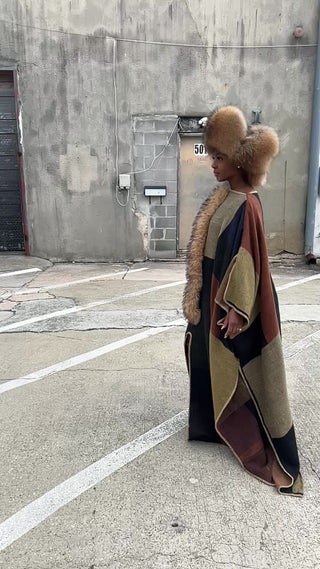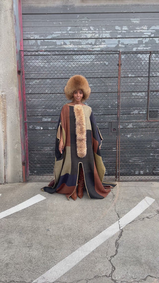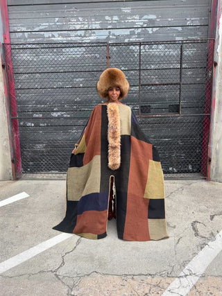 Introducing our Empress Poncho - the perfect addition to your fall wardrobe! This gorgeous color block poncho features a removable faux fur for a touch of luxury.