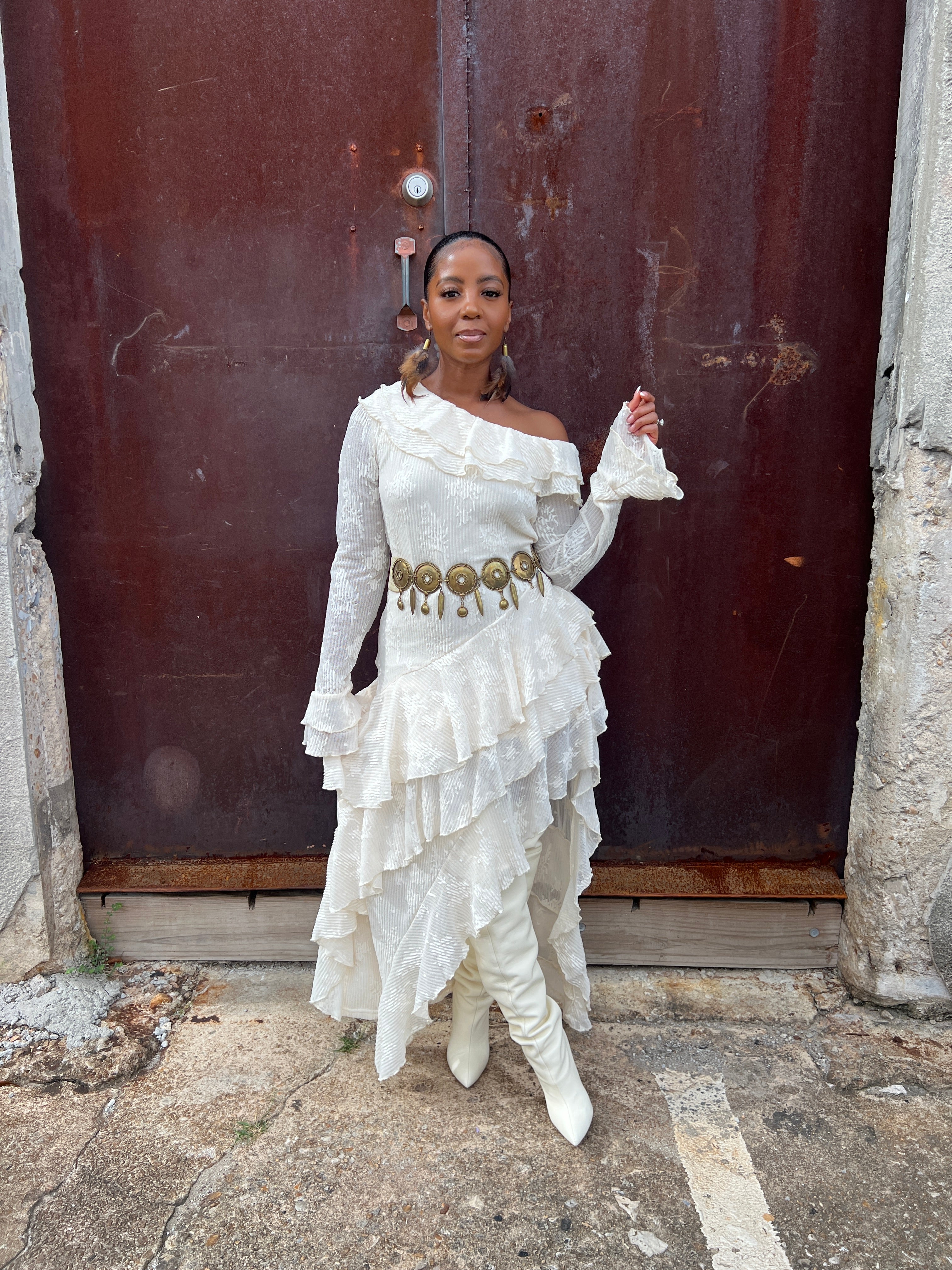 Elevate your style with our Glacier Ruffle Dress! Made from a raised ribbed knit, this dress features layers of asymmetrical ruffles for a chic and unique look. The off-shoulder design and elongated sleeves with ruffle edges add a touch of elegance. Plus, our high-quality materials ensure a perfectly aligned fit.