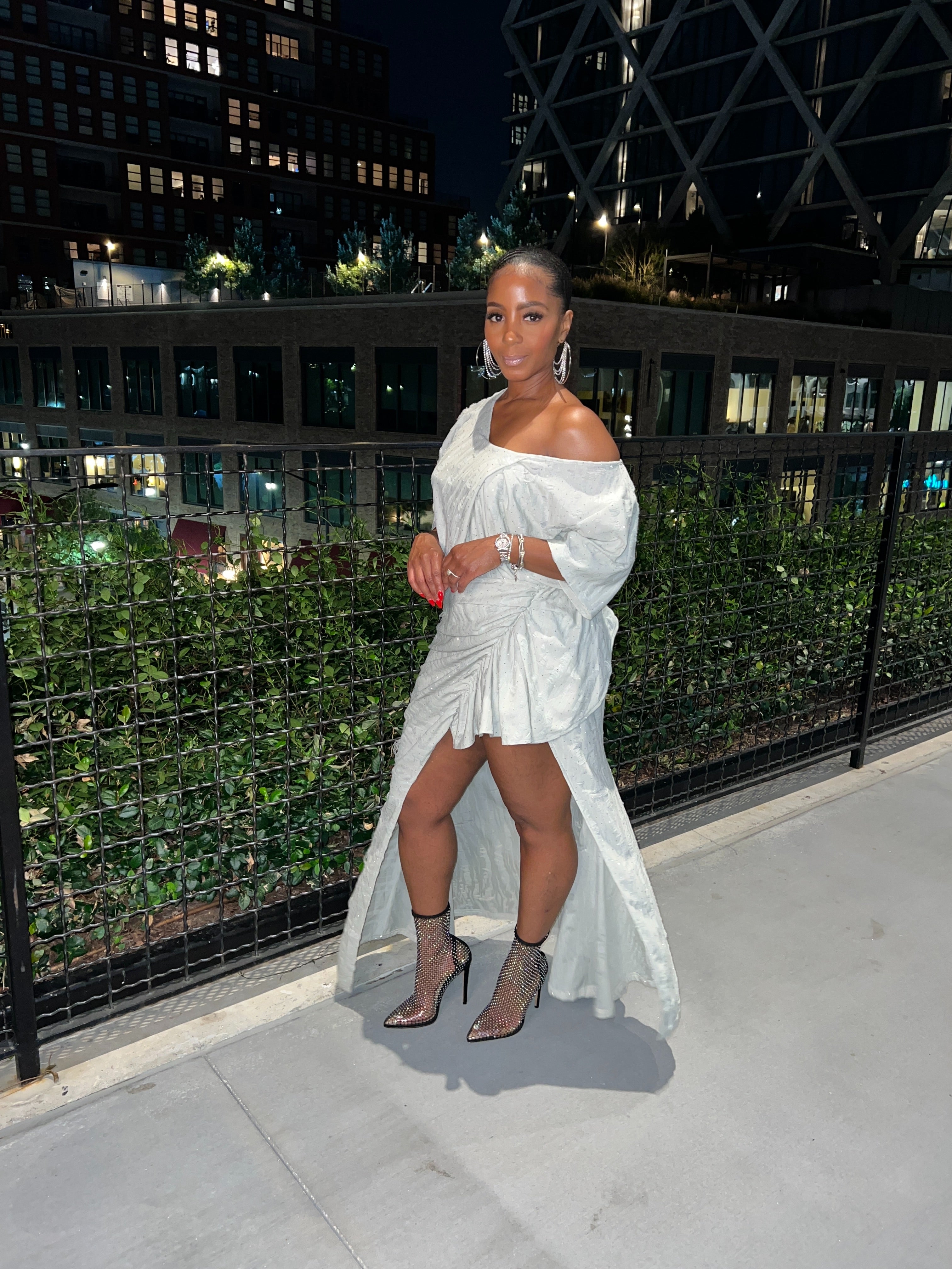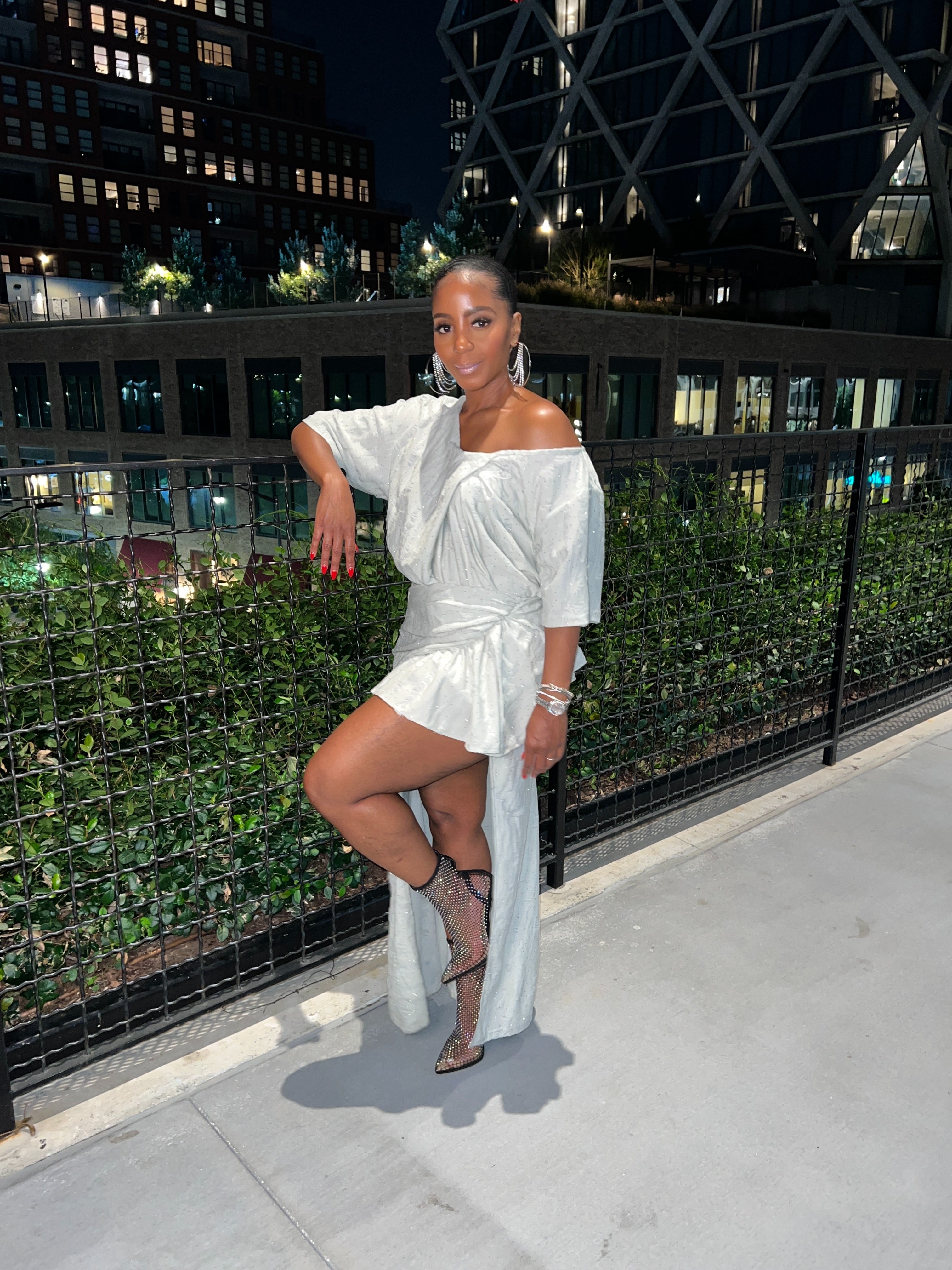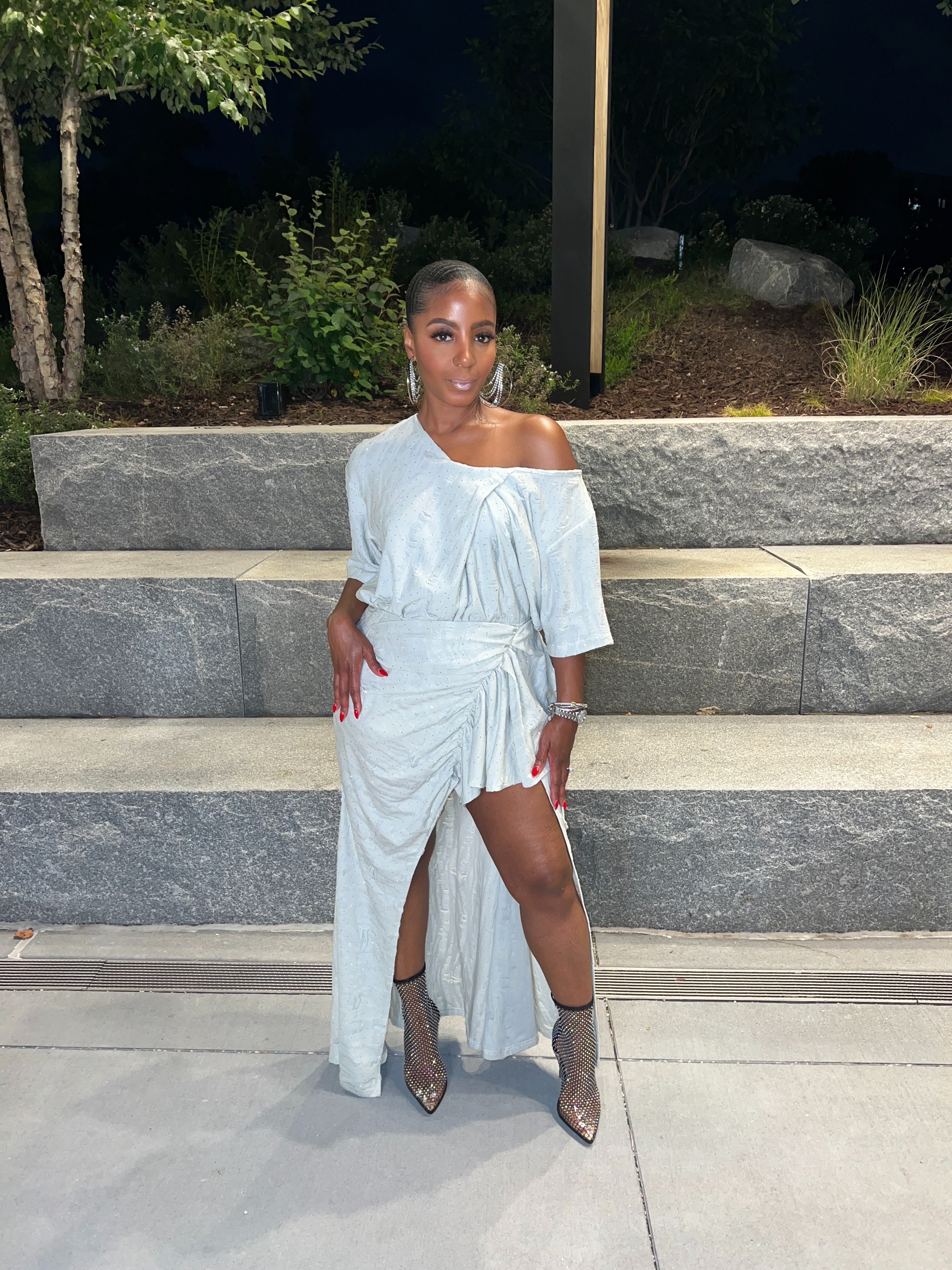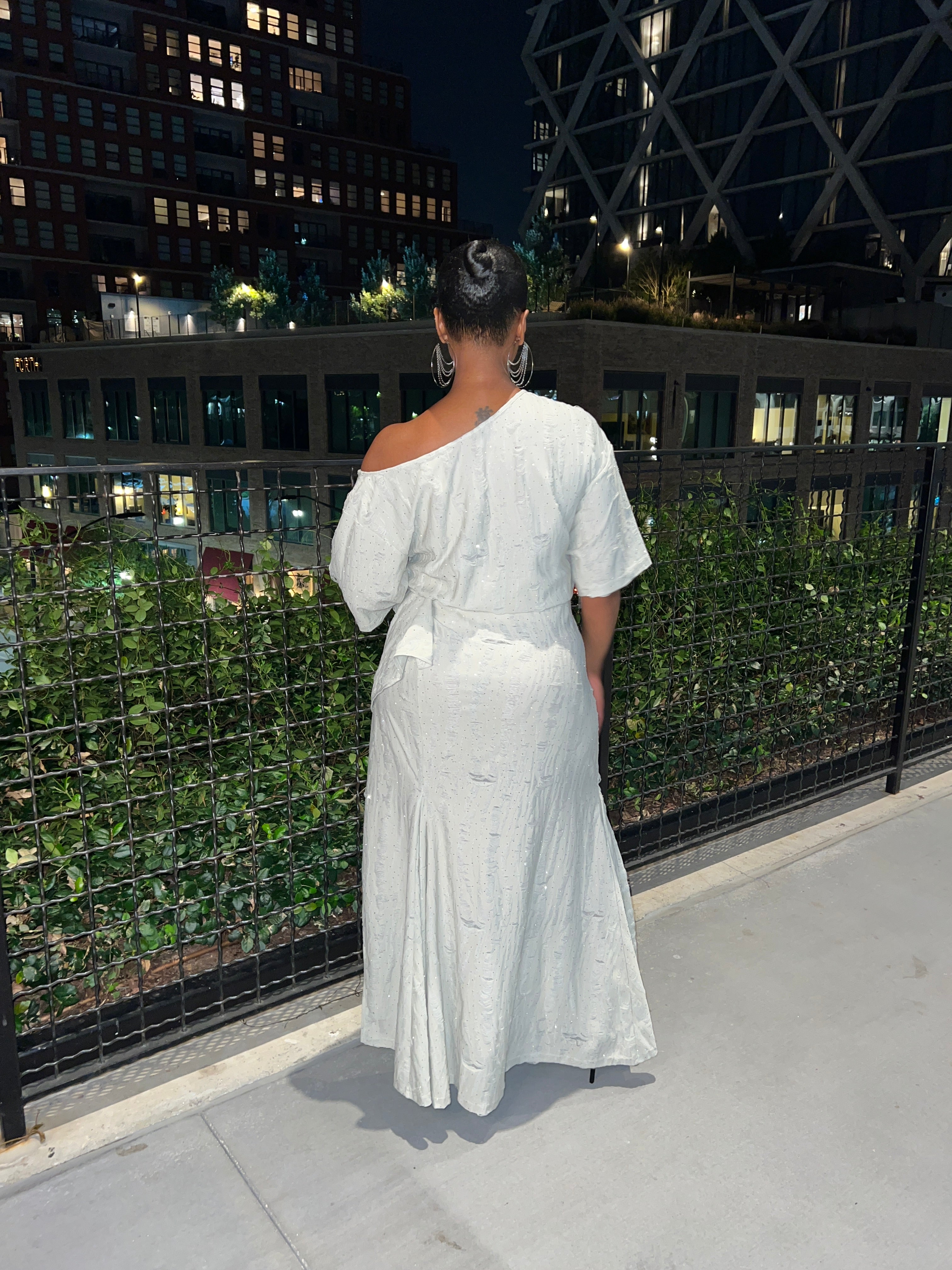 This two-piece set is the definition of effortless glamour with a modern twist. The top drapes off the shoulder with a relaxed elegance, giving just the right amount of edge. The asymmetrical skirt features adjustable ruching that lets you control the drama of the slit, while its uneven hemline keeps the silhouette fresh and dynamic.