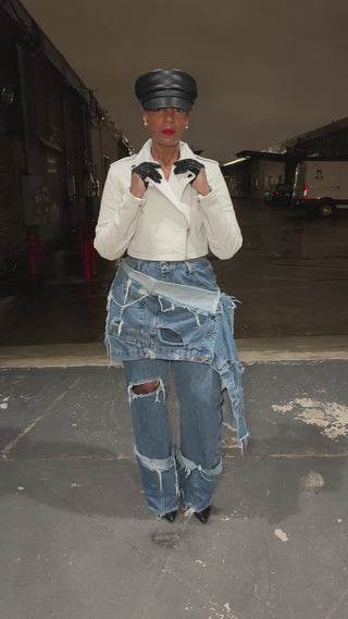 White Leather Cropped Biker
