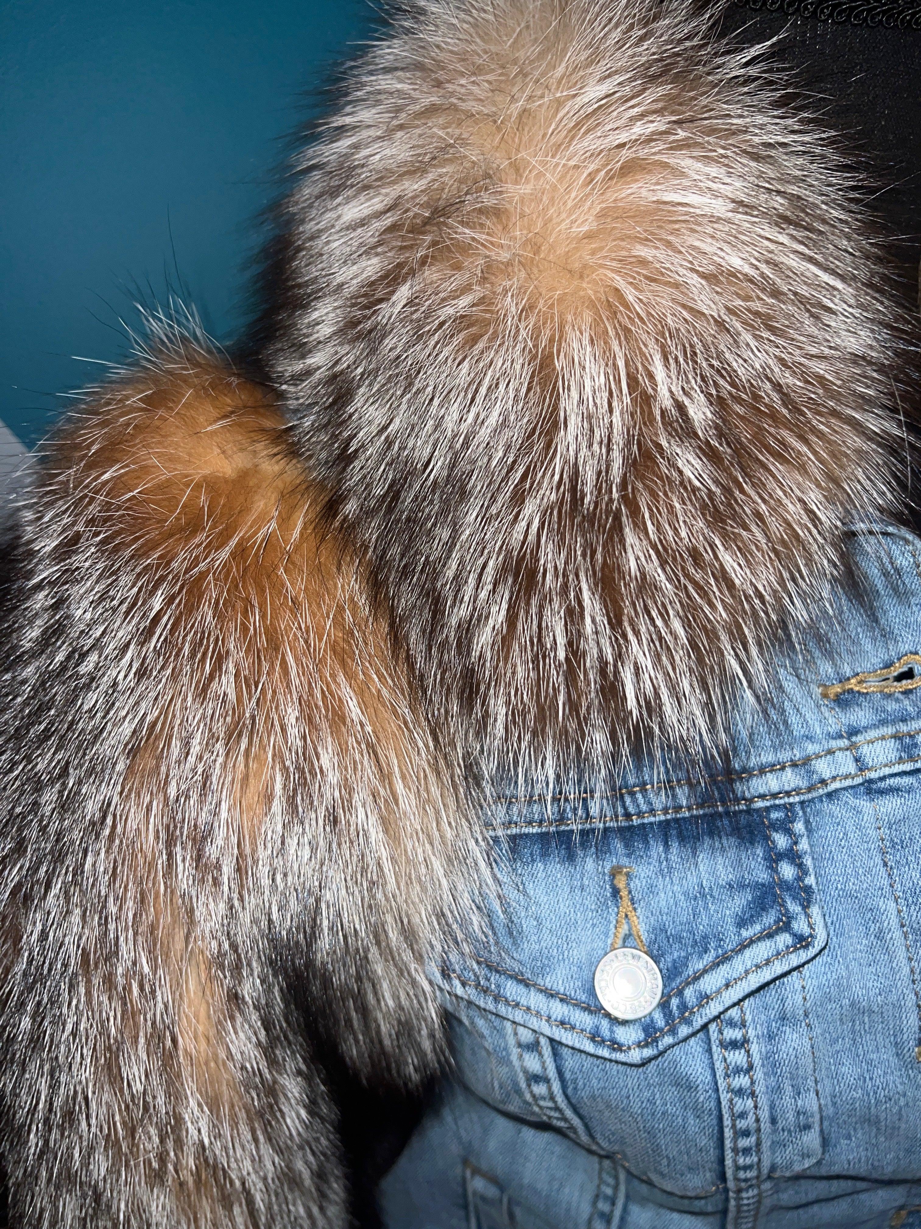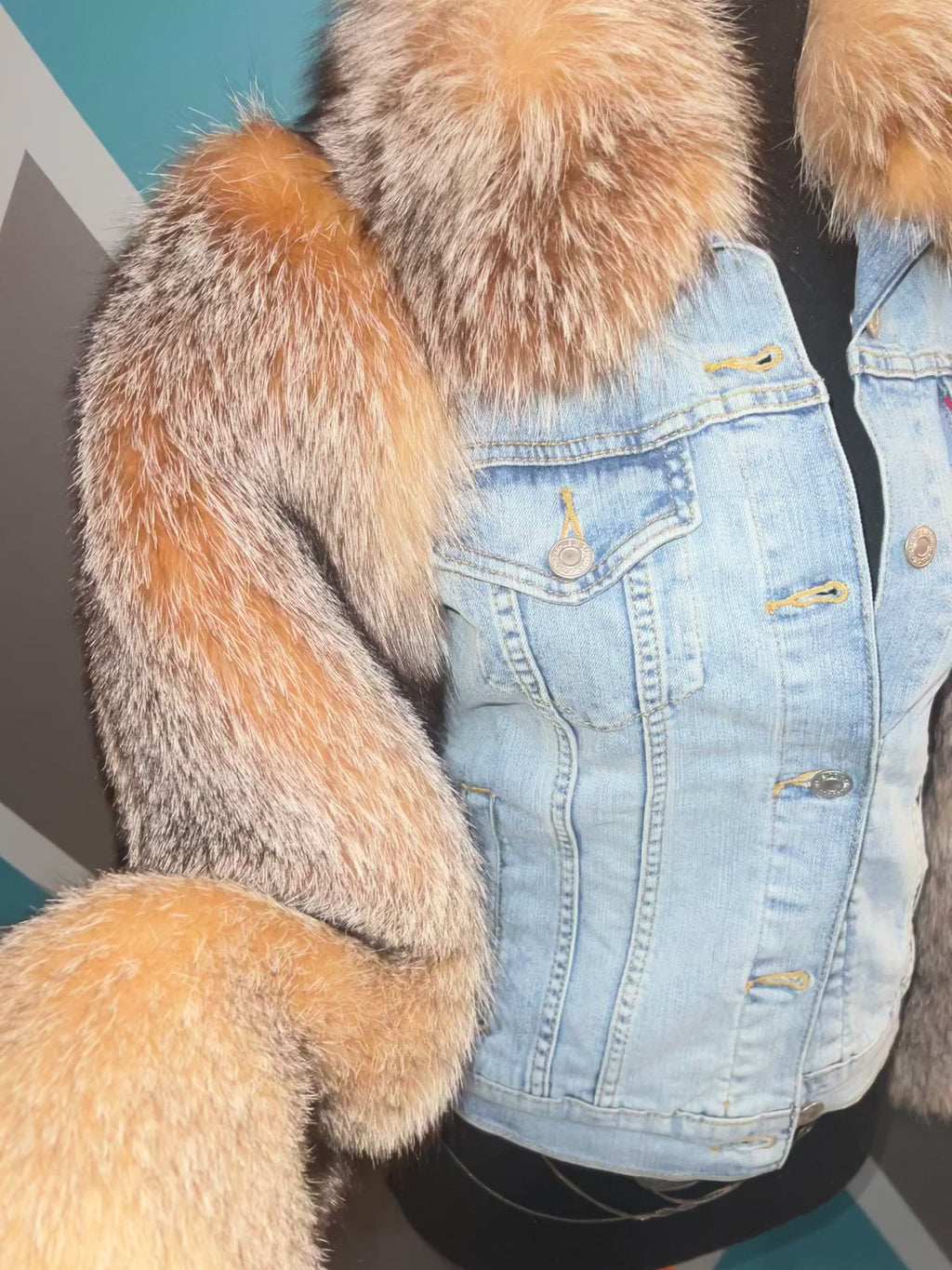 Crafted with genuine fox fur and sized for a comfortable fit, this jacket offers both style and warmth.