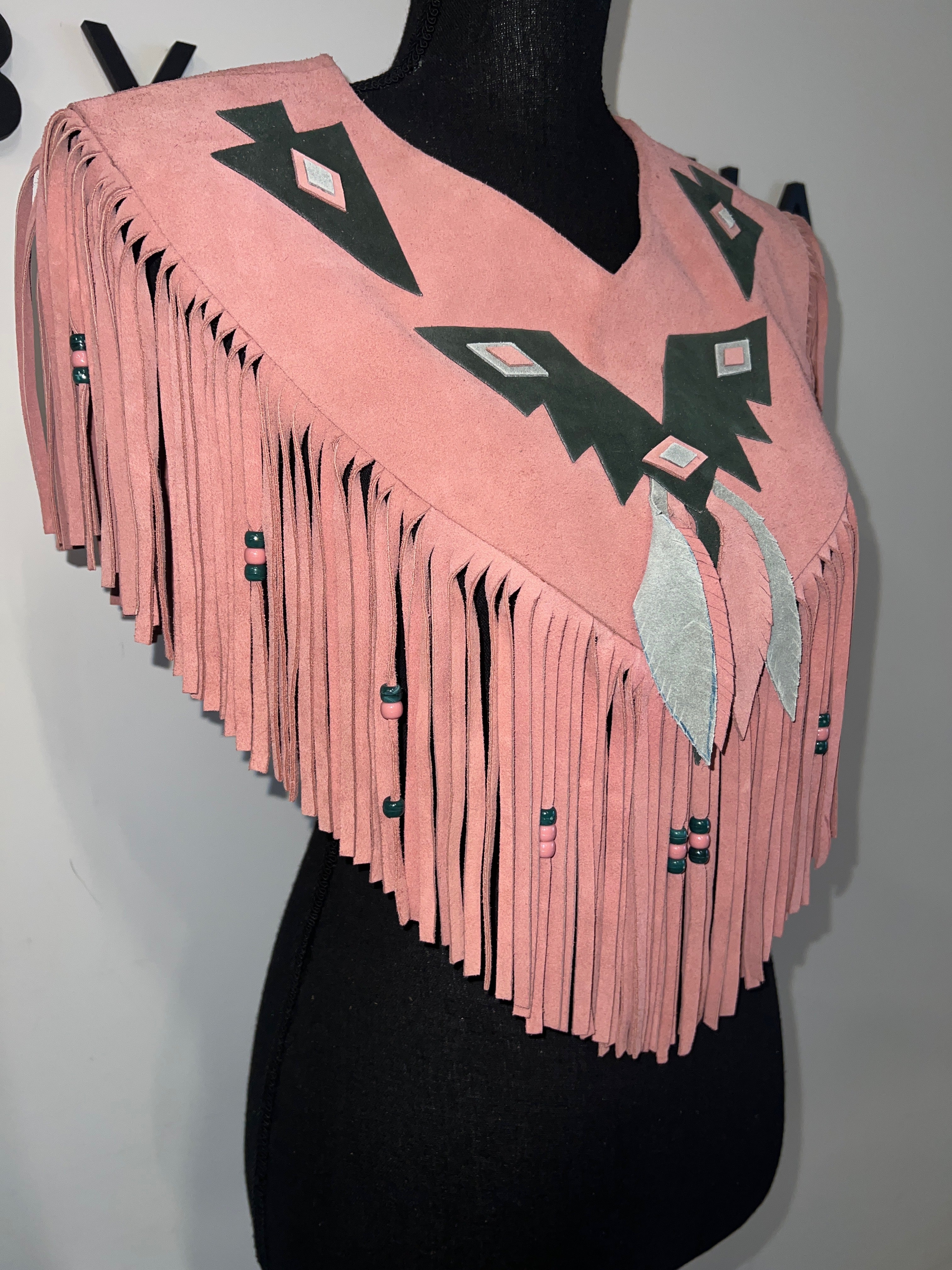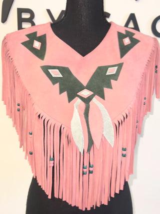 Pretty Pink Fringe Suede Poncho