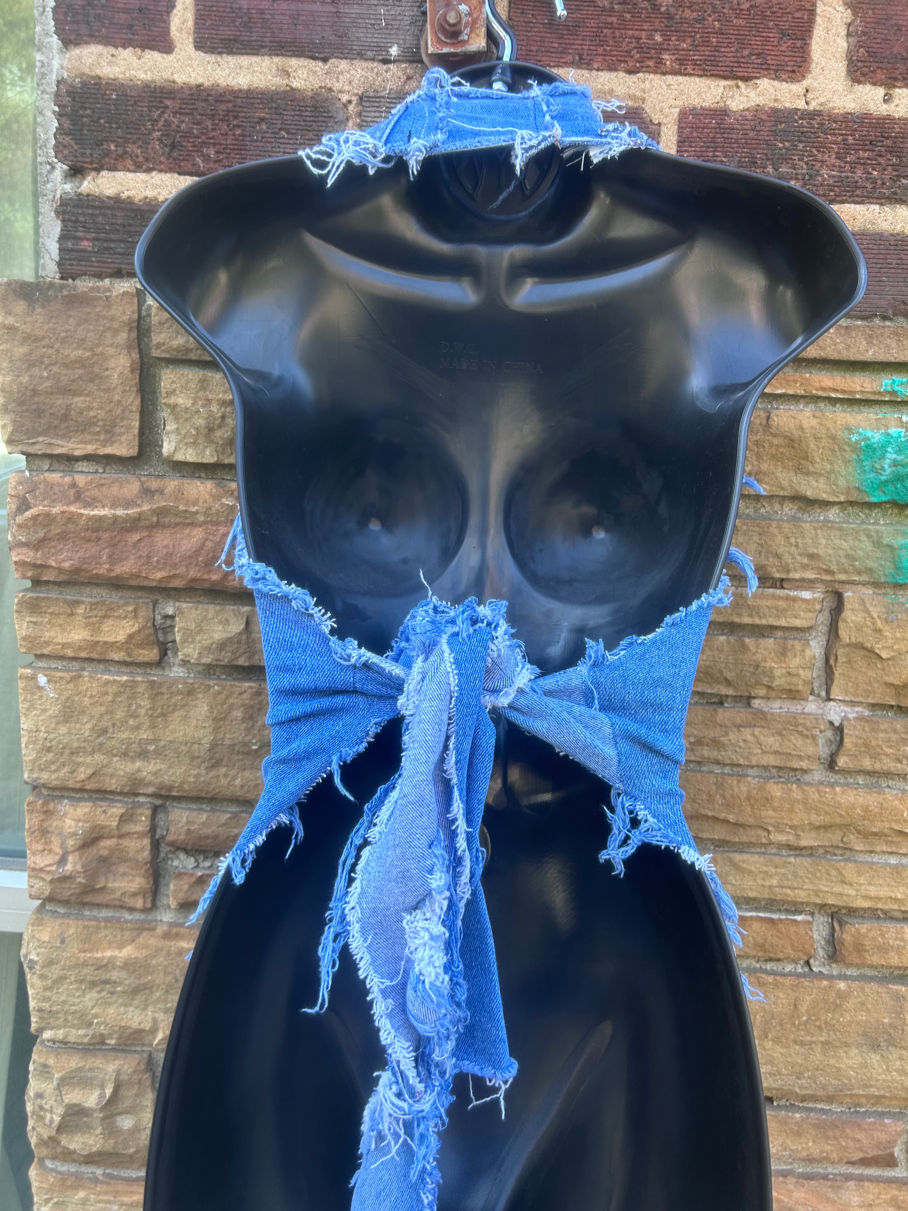Custom Blue Distressed Halter Top