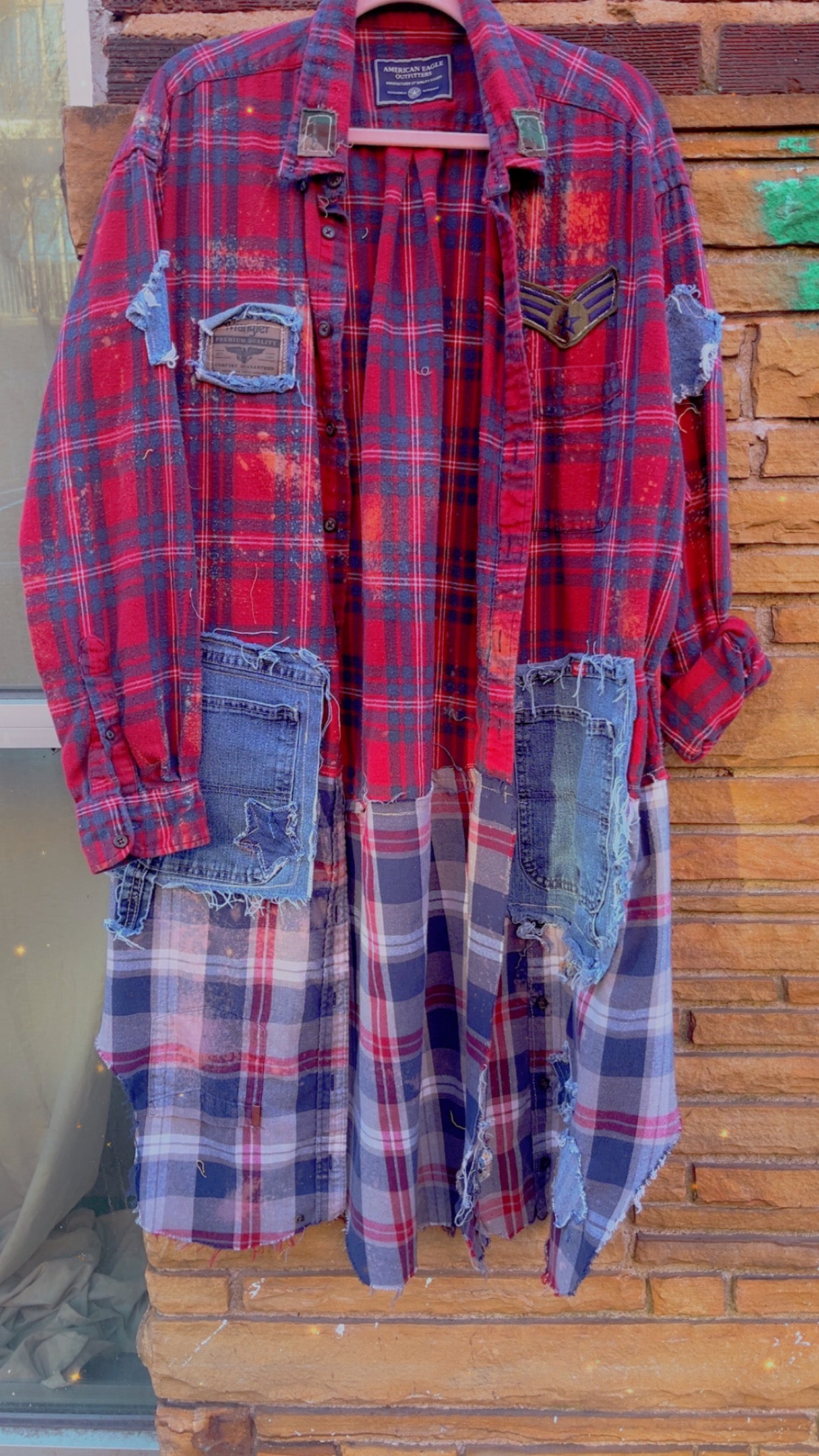 Custom Pink/ Blue Distressed Multi Plaid Duster