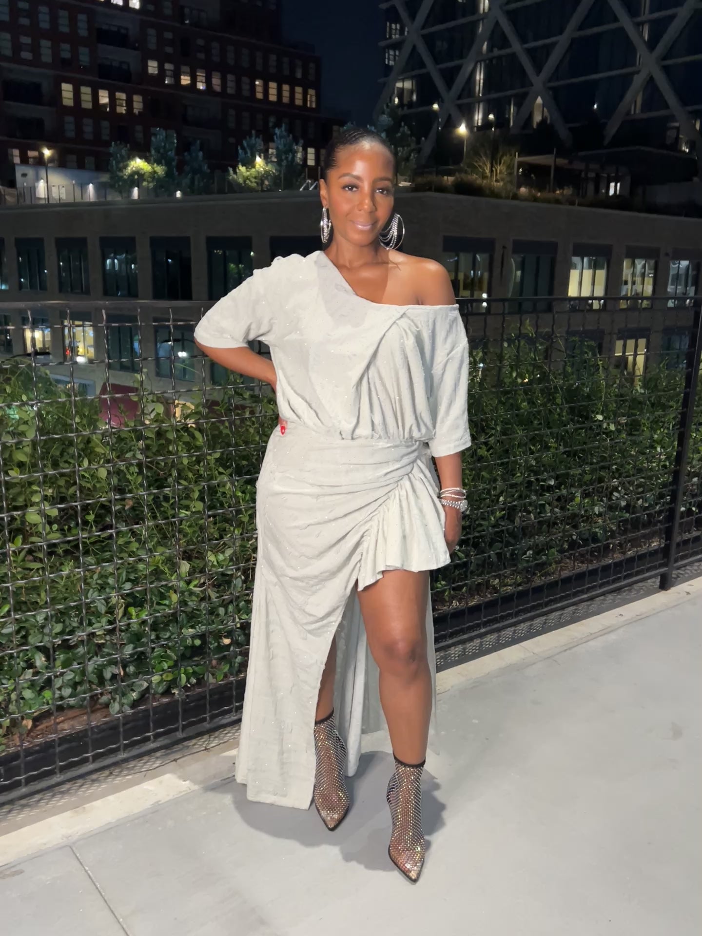 This two-piece set is the definition of effortless glamour with a modern twist. The top drapes off the shoulder with a relaxed elegance, giving just the right amount of edge. The asymmetrical skirt features adjustable ruching that lets you control the drama of the slit, while its uneven hemline keeps the silhouette fresh and dynamic.