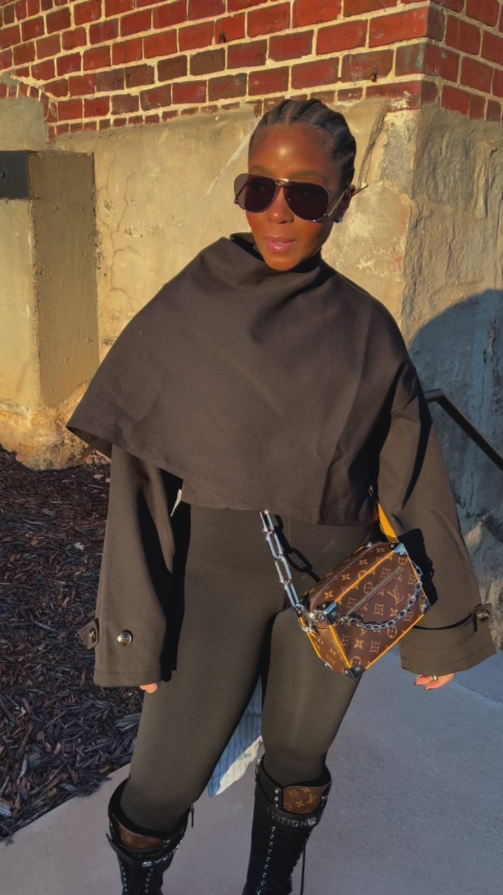 The Strata Wrap Blazer redefines modern tailoring with its cropped, wrap-around design and distinctive cowl neckline.